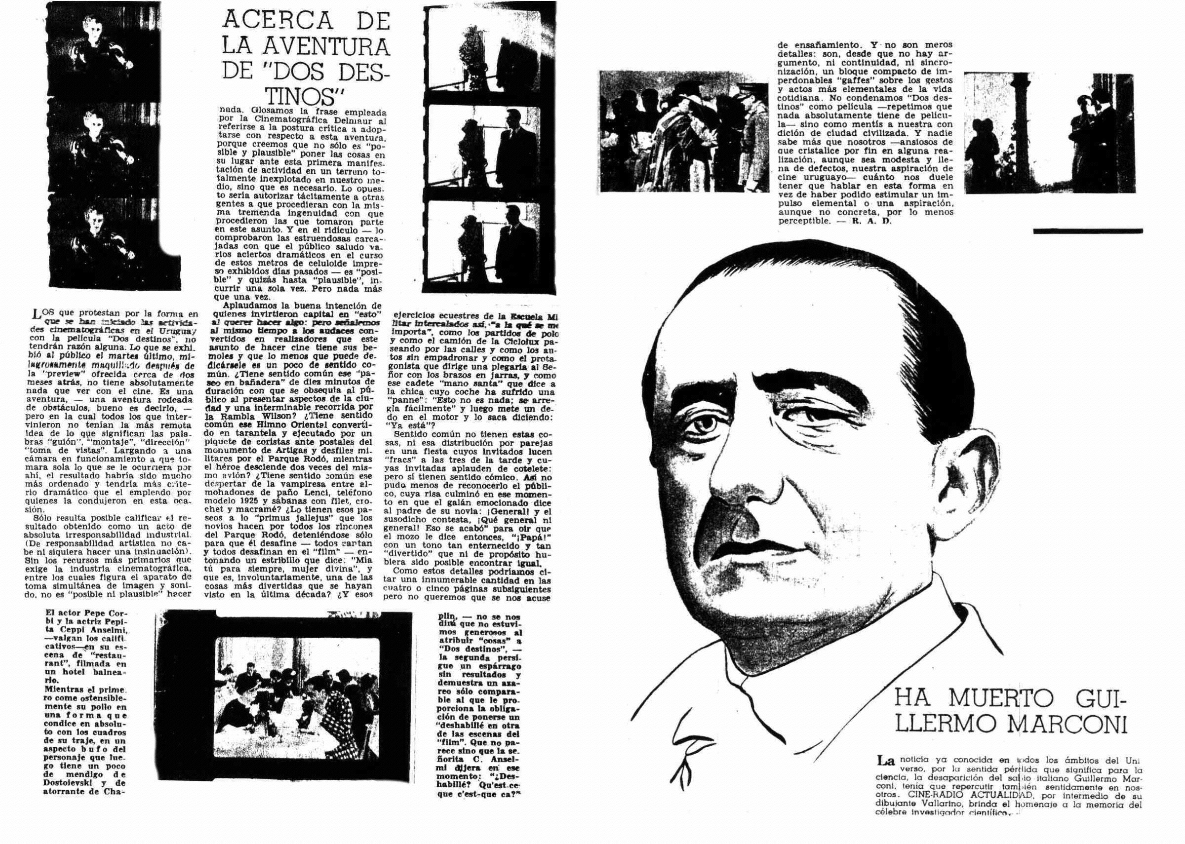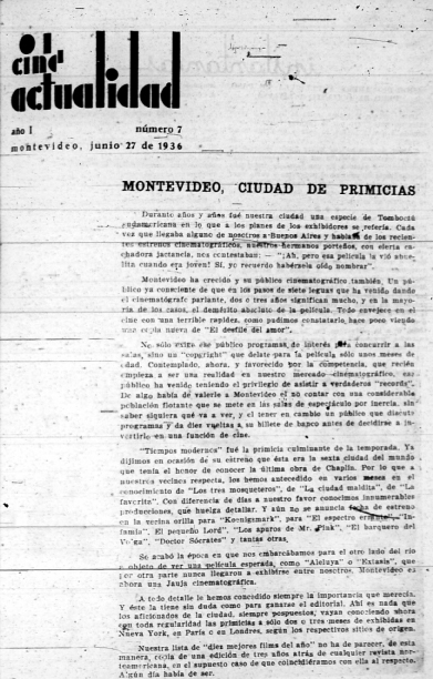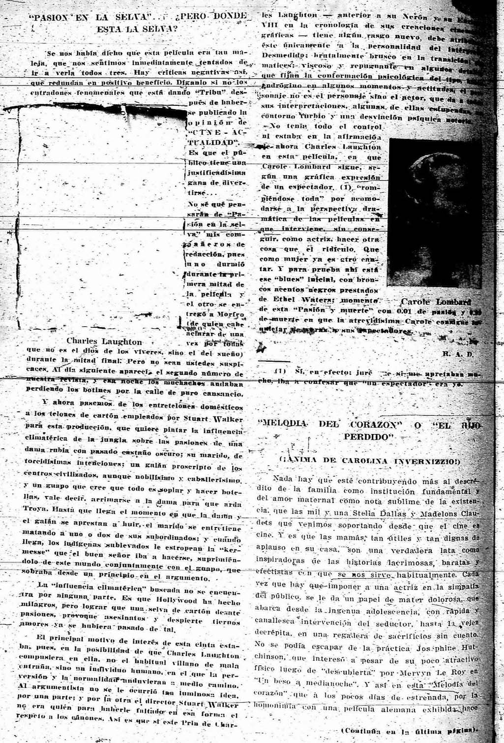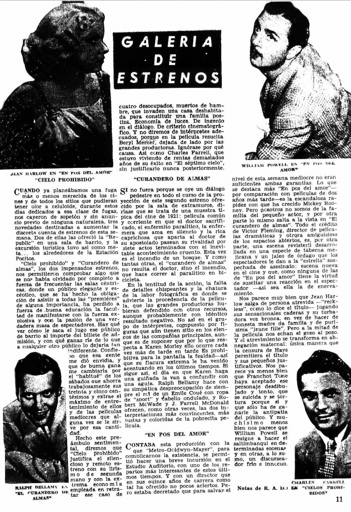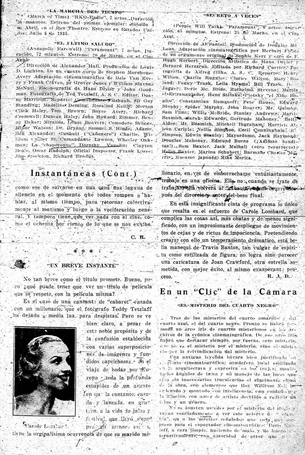 Artículos en Cine Radio Actualidad sin fecha exacta, de 1936.