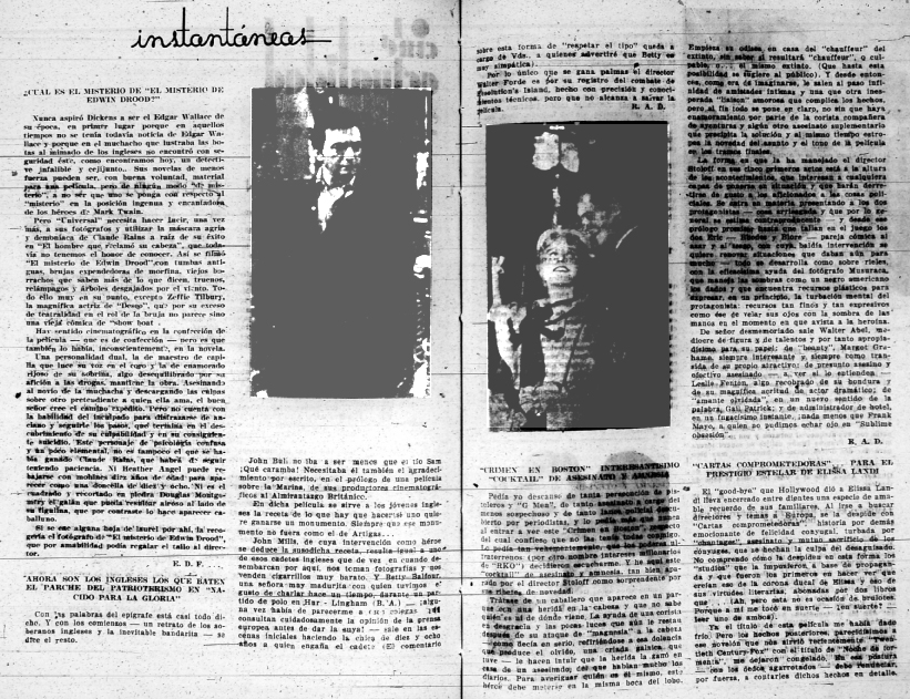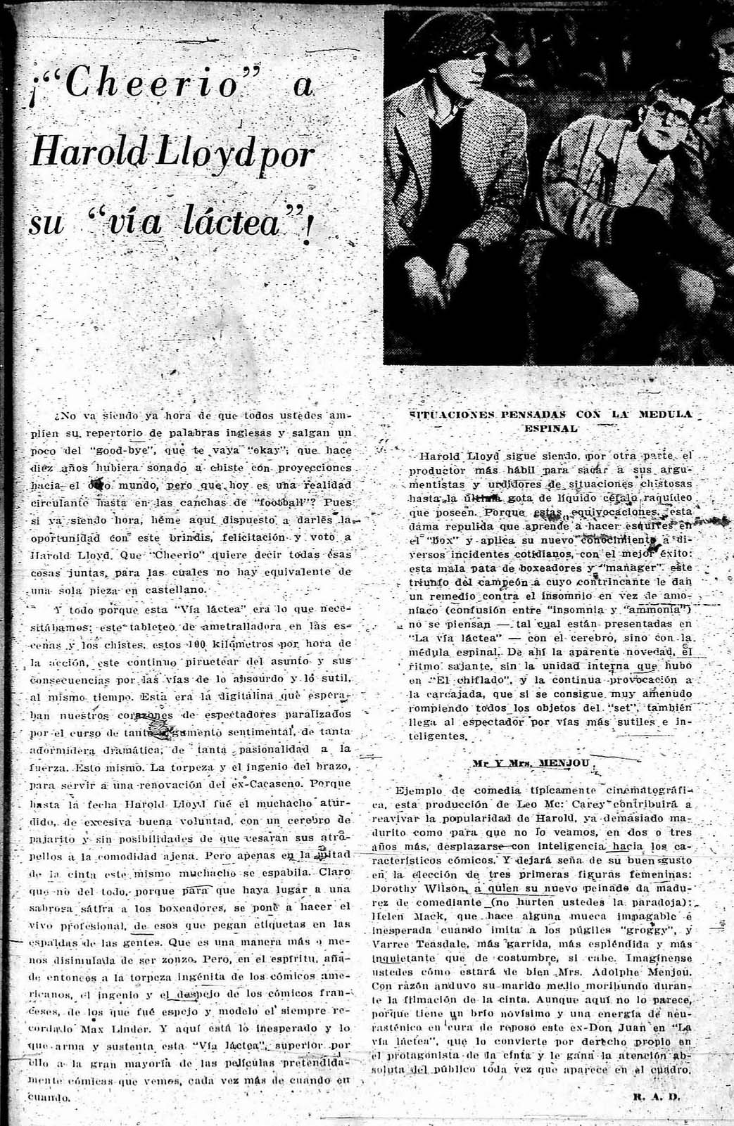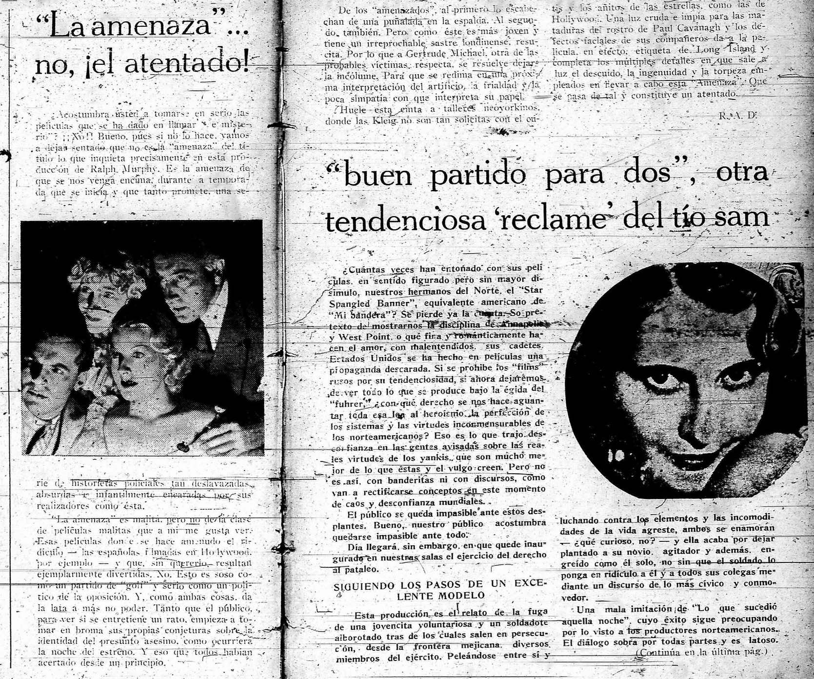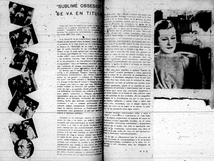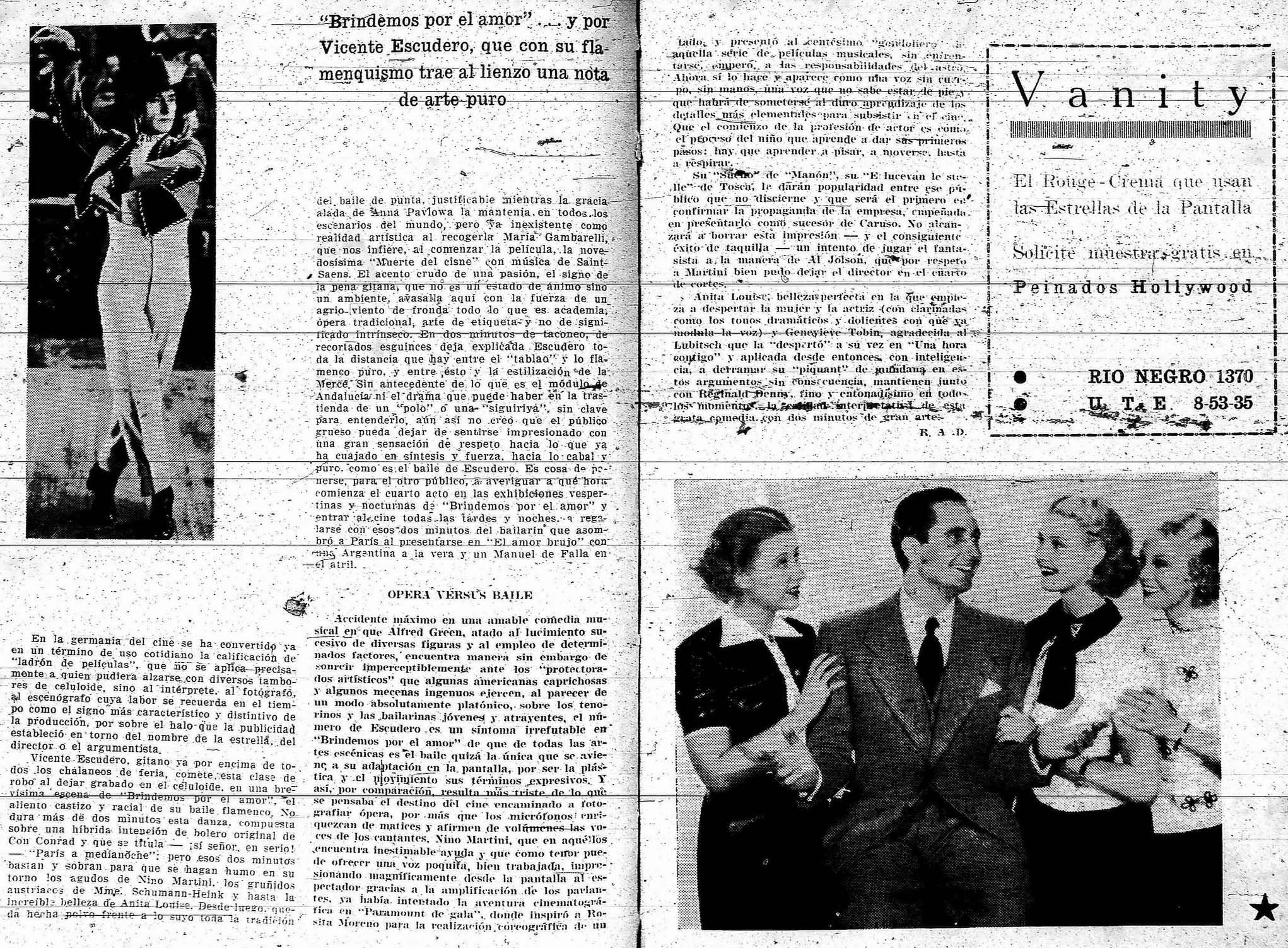 Artículos en Cine Radio Actualidad sin fecha exacta, de 1936.