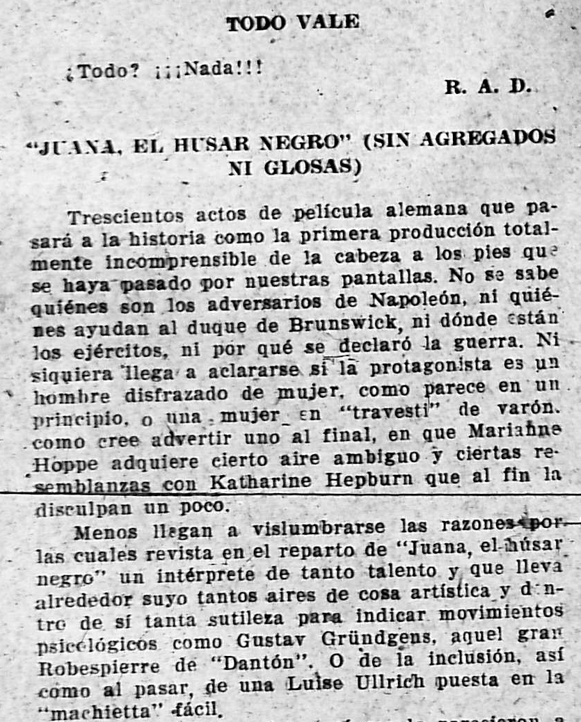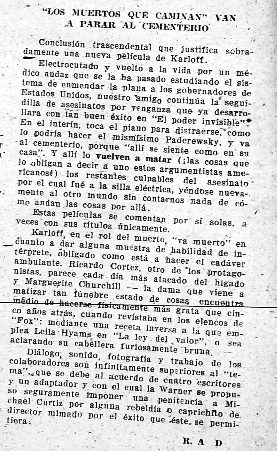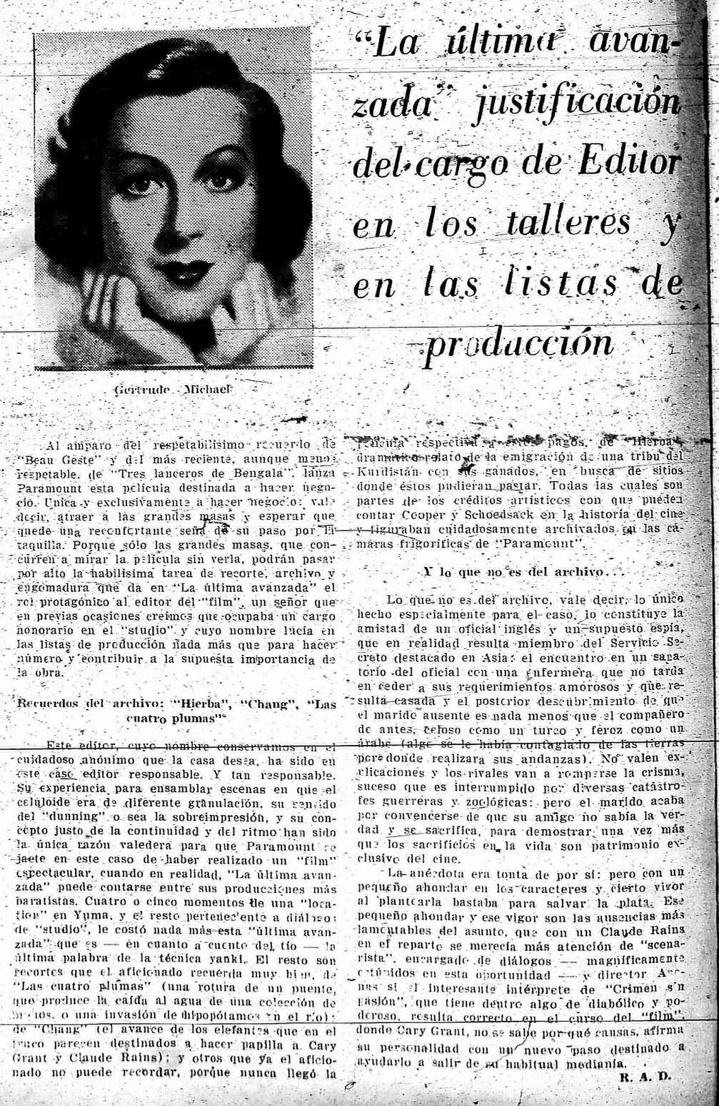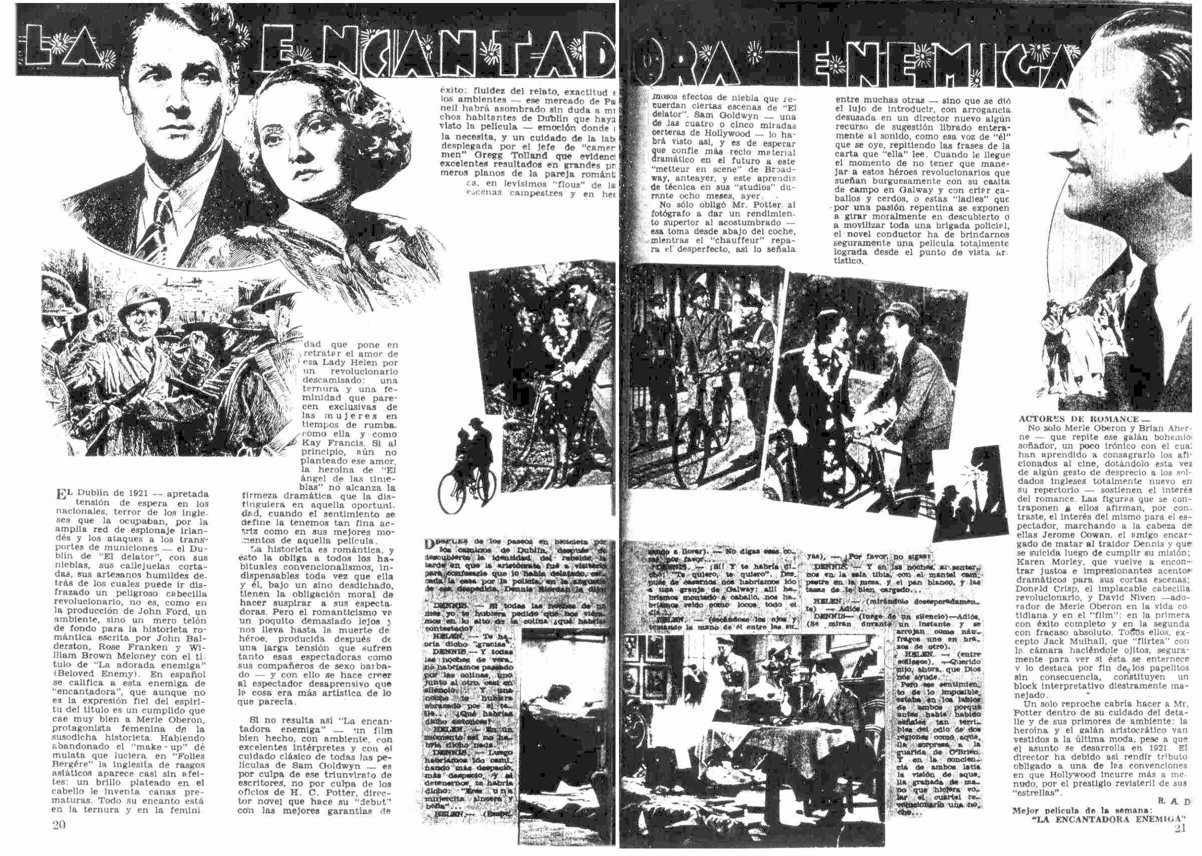 Artículos en Cine Radio Actualidad sin fecha exacta, de 1936.