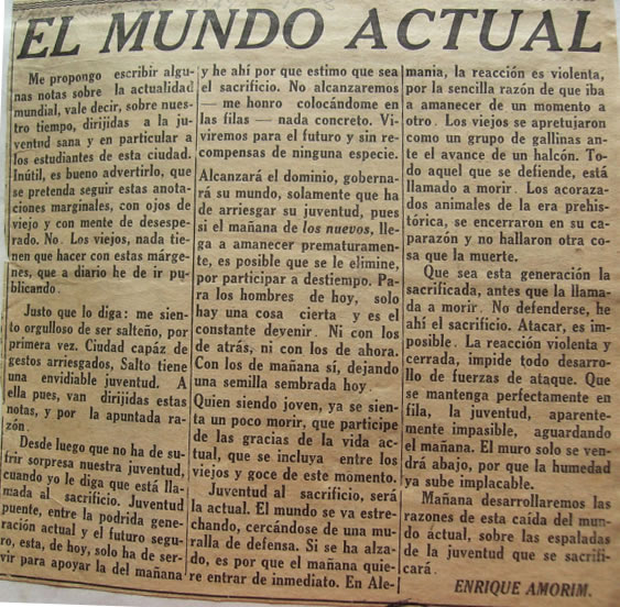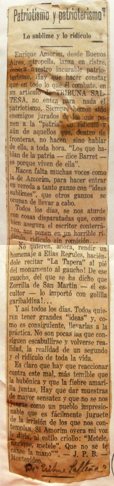 Diario Tribuna Salteña, Salto, 1933. Artículo firmado con seudónimo J.P.B.