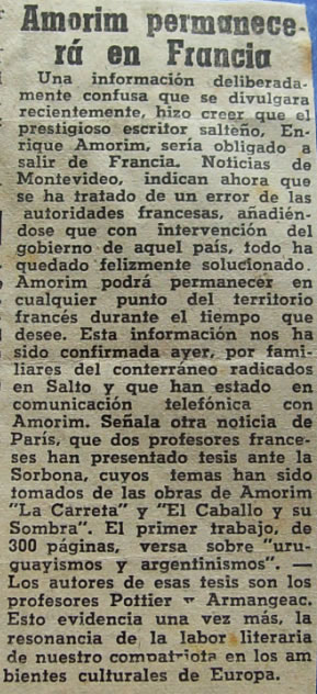 Le écrivain uruguayen Enrique Amorim expulsé de France