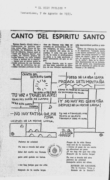 Canto del Espíritu Santo El Bien Público, Montevideo, 7 de Agosto de 1953.