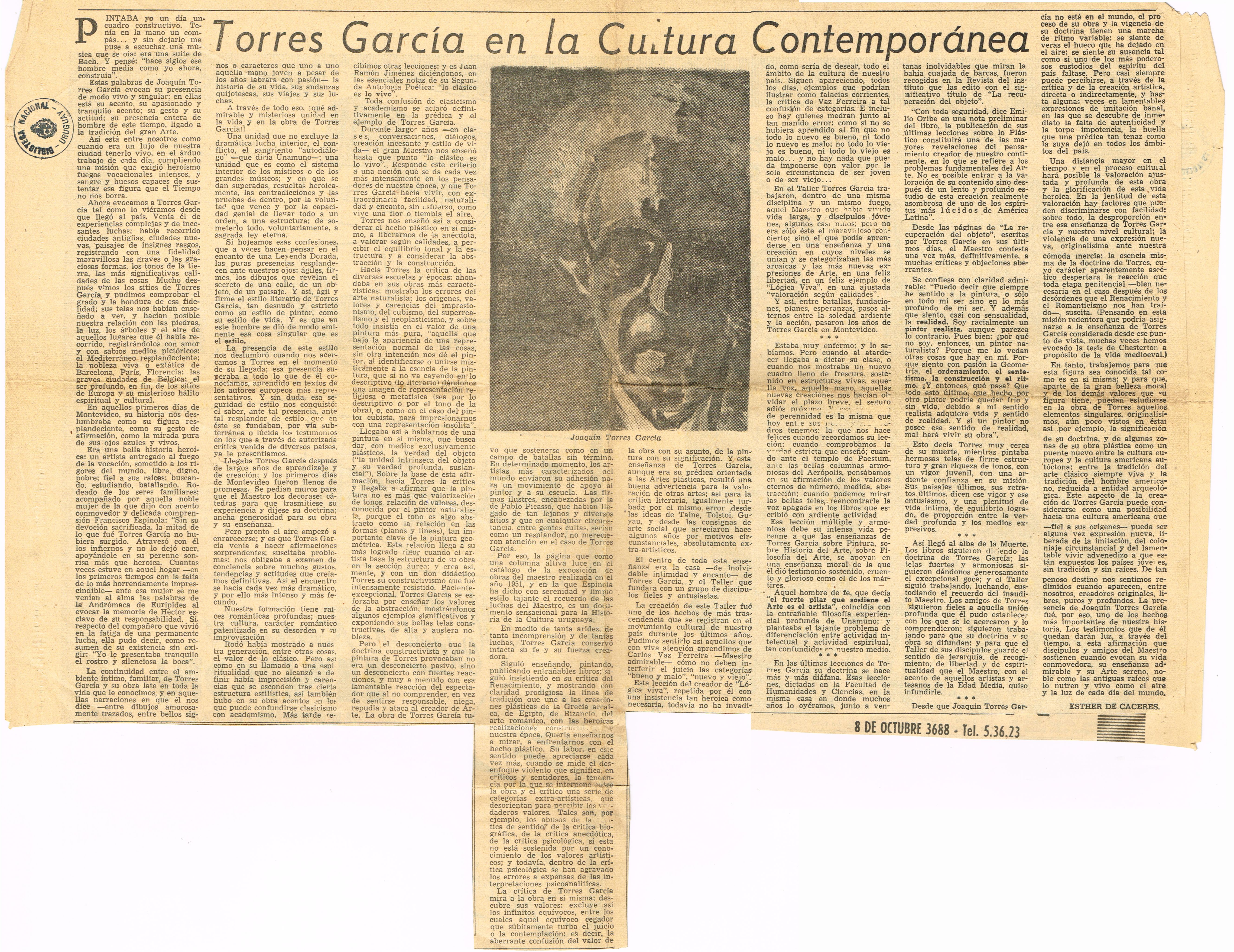 Alma y creación de Joaquín Torres García Conferencia pronunciada por la Doctora Esther de Cáceres en el Museo Nacional de Bellas Artes, Montevideo, ¿1963?