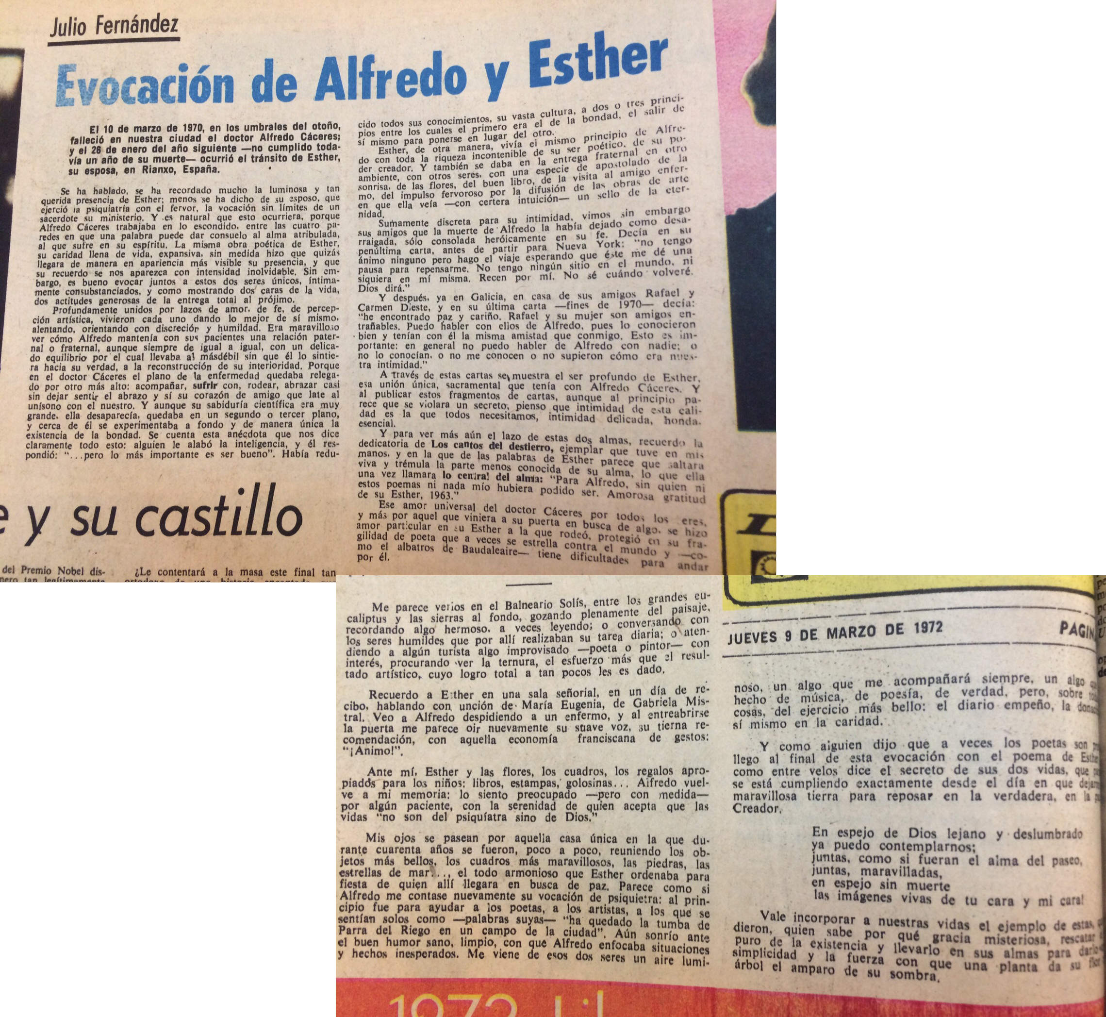 Evocación de Alfredo y Esther FERNÁNDEZ, Julio, jueves 9 de marzo de 1972.