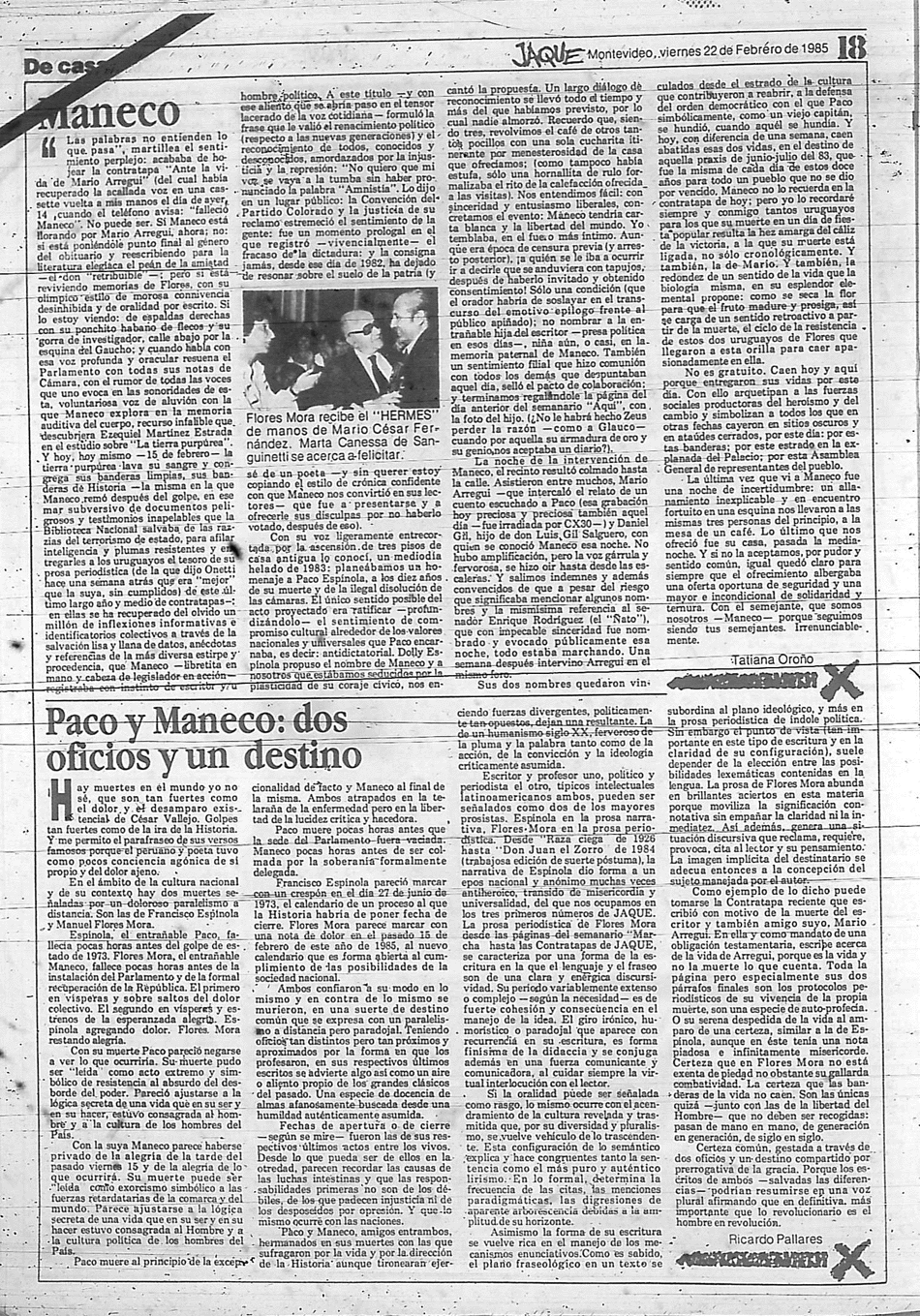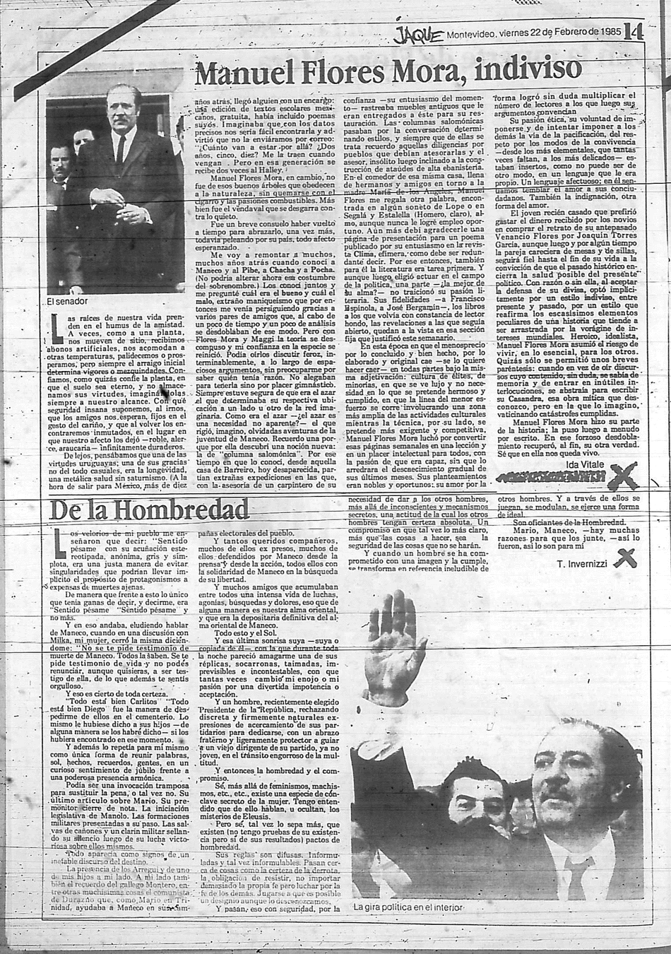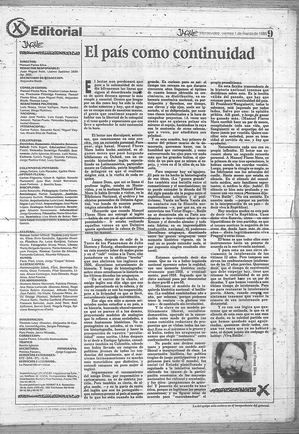Manuel Flores Silva, Jaque (Edición especial), 1 de marzo de 1985.