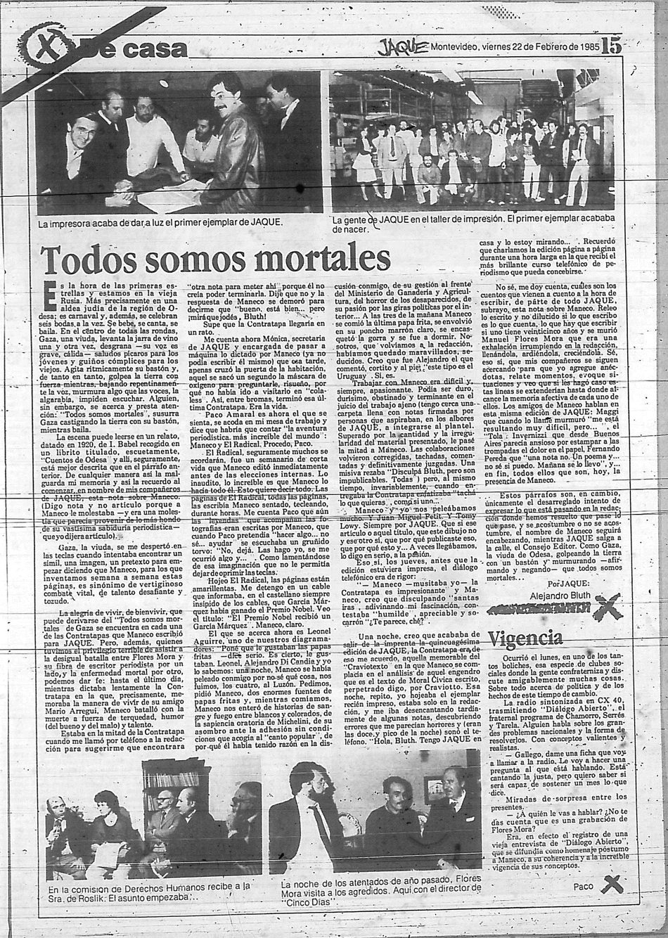 José Pedro Díaz, Jaque (Edición especial), 1 de marzo de 1985.