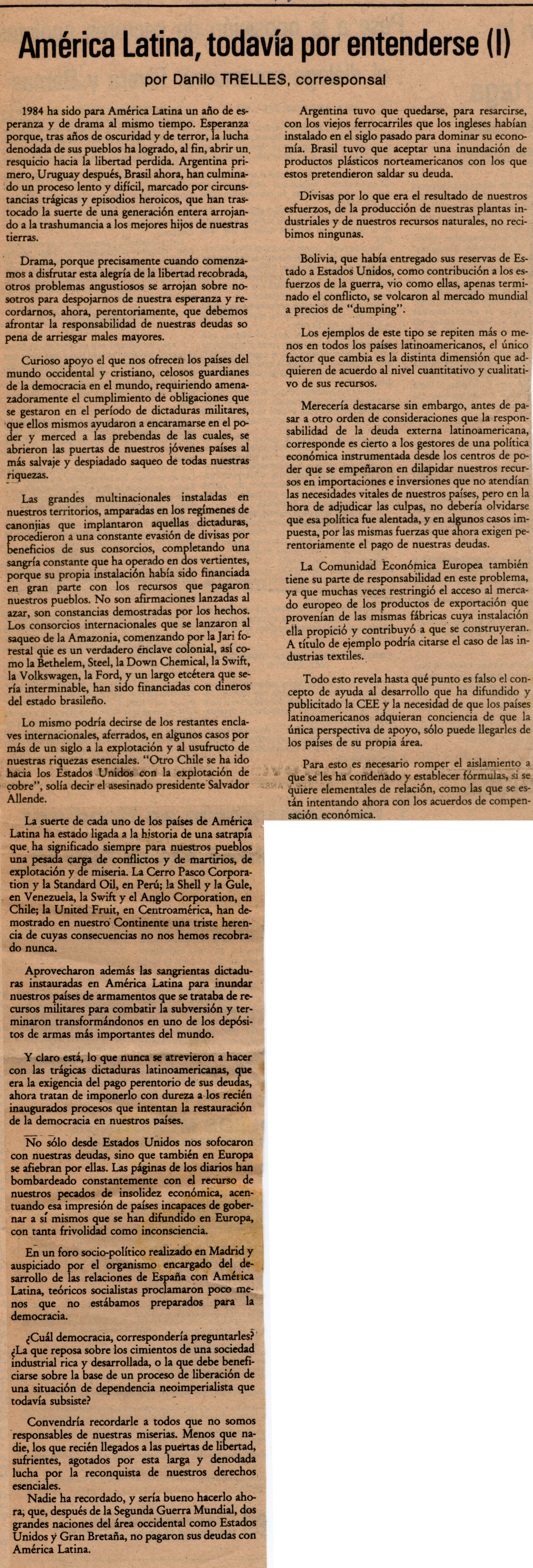 1985.03.03. América Latina, todavía por entenderse.