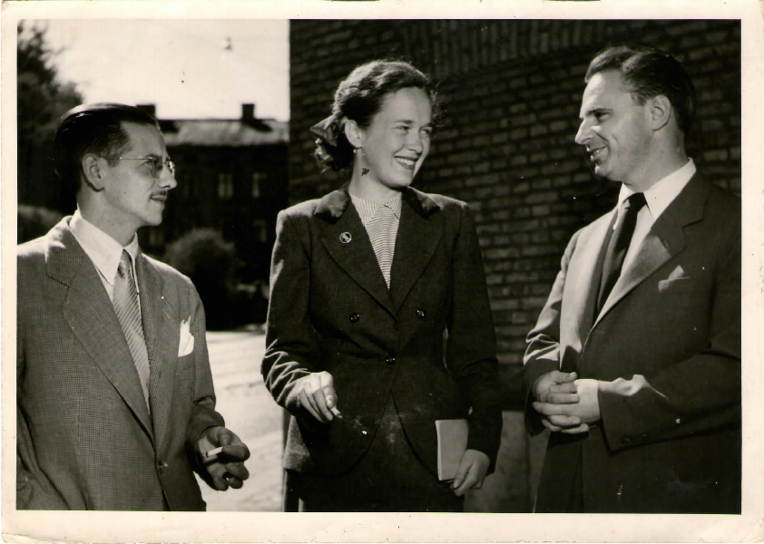 Dinuchi Torres, Lisbet Palme (pareja de Olof Palme), Danilo Trelles en el restaurant Henriksberg. Gotemburgo, Suecia. 3 de agosto de 1951.
