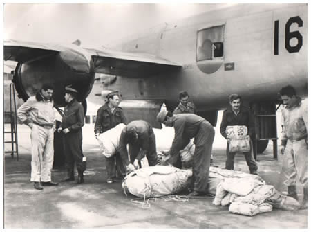 Preparando provisiones para repartir por la gran inundación de 1950.